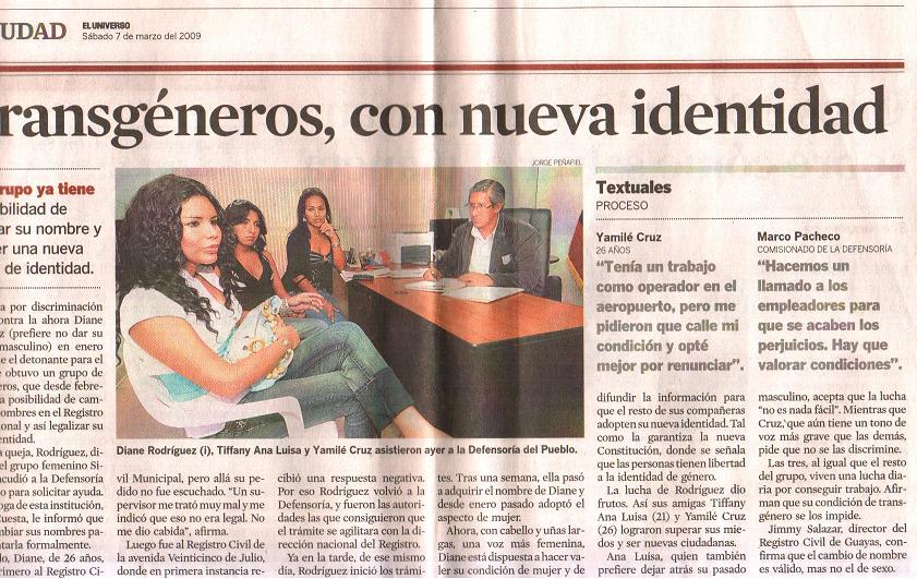 Una queja por discriminación laboral contra la ahora Diane Rodríguez (prefiere no dar su nombre masculino) en enero pasado fue el detonante para el logro que obtuvo un grupo de transgéneros, que desde febrero tiene la posibilidad de cambiar sus nombres en el Registro Civil nacional y así legalizar su nueva identidad.