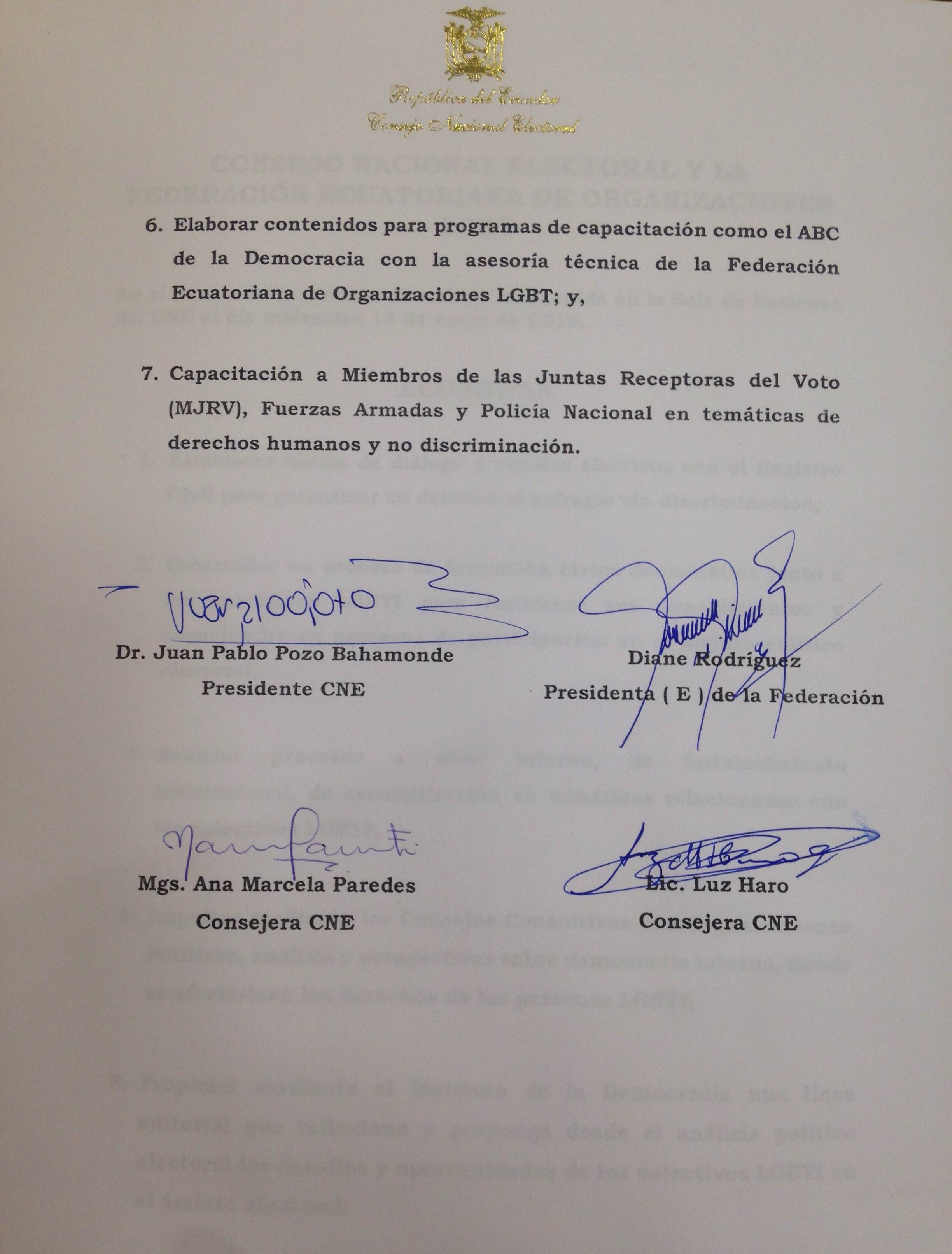 Acta del acuerdo entre consejo nacional electoral y federacion ecuatoriana de organizaciones lgbti Publicado 5 septiembre, 2016 en 2448 × 3224 en CONSEJO NACIONAL ELECTORAL Y FEDERACIÓN LGBTI FIRMAN ACUERDOS LGBTI ← Anterior Siguiente →