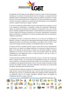 En el año 2013, las poblaciones LGBTI logramos gracias a la apertura política del actual gobierno el acuerdo 21525, cuyo fin es revisar consuetudinariamente los avances en derecho LGBTI, misma que hacemos en este momento. Avanzar y mejorar lo que hace falta mejorar es una de las consignas principales.