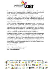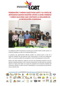 FEDERACIÓN Y VARIOS COLECTIVOS LGBTI Y LA JUNTA DE ARTESANOS DAMOS NUESTRO APOYO A LENIN MORENO Y JORGE GLAS PARA QUE CONTINÚE LA INCLUSIÓN EN LA REVOLUCIÓN CIUDADANA