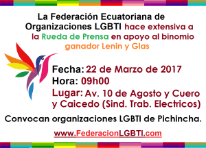 La Federación ecuatoriana de organizaciones LGBTI hace extensiva a la Rueda de Prensa en apoyo al binomio ganador Lenin y Glas
