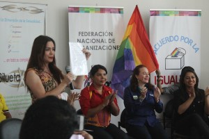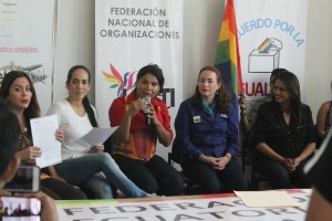 La Federación Nacional de Organizaciones LGBTI, Bolivarianos Diversos, Observatorio GLBTI del Ecuador, Red Provincial de Esmeraldas, Colectivo GLBTI de santo Domingo, Sé Tú Mismo de Pastaza, Colectivos Sierra – Centro de Tungurahua, Colectivo GLBTI de Loja, Asociación GLBTI de Zamora Chinchipe, Grupo GLBTI de Lago Agrio, Asociación Silueta X, Colectivo GLBTI de Nobol, Asociación Comunidad Futura, Grupo GLBTI de Palestina, Asociación Trans Global, Asociación Transmasculinos del Ecuador, Colectivo Orgullo GLBTI Babahoyo, Colectivo Barcelona GLBTI, Colectivo GLBTI de Yaguachi, Movimiento GLBTI de Santa Elena, Colectivo GLBTI de Naranjito, Plataforma Revolución Trans, Campaña Unión Civil Igualitaria Ecuador, Asociación de Padres y Madres de los GLBTI, Colectivo GLBTI de Milagro, Campaña Tiempo de Igualdad, Colectivo GLBTI de Naranjito, Asociación GLBTI Ciudad del Río Grande, Asociación Ecuatorianos Diversos, Campaña Acuerdo por la Igualdad, Colectivo GLBTI de Ventanas, Colectivo LGBT de Pedro Carbo, vemos con buenos ojos el presente documento que nos permitirá exigir nuestros derechos. Al mismo tiempo se está reafirmando la continuidad en avances de los derechos por orientación sexual e identidad de género, en el gobierno de Lenin Moreno y Jorge Glas, binomio de Alianza PAIS, movimiento del actual gobierno que ha tenido apertura política para la materialización de la inclusión de poblaciones de la diversidad sexual.