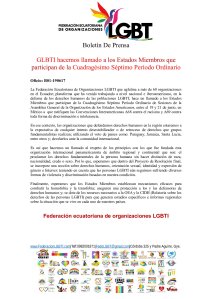 La Federación Ecuatoriana de Organizaciones LGBTI que aglutina a más de 68 organizaciones en el Ecuador; plataforma que ha venido trabajando a nivel nacional e iberoamericano, en la defensa de los derechos humanos de las poblaciones LGBTI; hace un llamado a los Estados Miembros que participan de la Cuadragésimo Séptimo Período Ordinario de Sesiones de la Asamblea General de la Organización de los Estados Americanos, entre el 19 y 21 de junio, en México a que ratifiquen las Convenciones Interamericanas A68 contra el racismo y A69 contra toda forma de discriminación e intolerancia.