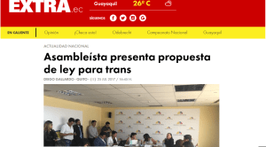 La primera asambleísta transexual del Ecuador, Diane Rodríguez presentó este 25 de julio de 2017, una propuesta para la modificación de la Ley orgánica de gestión de la identidad y datos civiles.