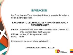 El Ministerio de Salud lanza el Manual de Atención a Población LGBT en Guayaquil. Invitamos a la población en general donde contaremos con la presencia de la Ministra de Salud y altas autoridades quienes se han comprometido con la Salud de los LGBT quienes han sido históricamente discriminados.