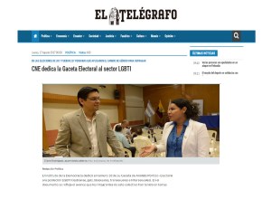 Esta noticia ha sido publicada originalmente por Diario EL TELÉGRAFO bajo la siguiente dirección: http://www.eltelegrafo.com.ec/noticias/politica/2/cne-dedica-la-gaceta-electoral-al-sector-lgbti