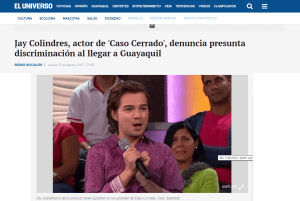 Jay Colindres, actor de ‘Caso Cerrado’, denuncia presunta discriminación al llegar a Guayaquil