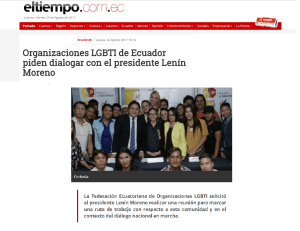 Fuente: http://www.eltiempo.com.ec/noticias/ecuador/4/419685/organizaciones-lgbti-de-ecuador-piden-dialogar-con-el-presidente-lenin-moreno