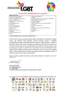 El día de ayer mi mamá estaba haciendo labores domesticas y de repente sin ningún motivo este individuo David Santiago Cordova Alvarado empezó a agredirla, inmediatamente empecé a defenderla en eso se acerco a patear la puerta, comenzó a llamarme maricón, para arriba y para abajo que salga para partirme la cara porque soy un maricón que donde me vea en algún lugar por la calle me va hacer tonteras y que es mejor que me cuide. La verdad no es la primera vez que me amenazan de esa manera tengo problemas desde atrás con este señor y con un tío de él que también hace lo mismo quisiera que me ayuden con alguna manera de protegerme porque al parecer no podre ir por la calle con normalidad.