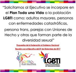 “Solicitamos al Ejecutivo se incorpore en el Plan Toda una Vida a la población LGBTI como: adultos mayores, personas con enfermedades catastróficas, persona trans, parejas con Uniones de Hecho y otras que forman parte de la diversidad sexual”