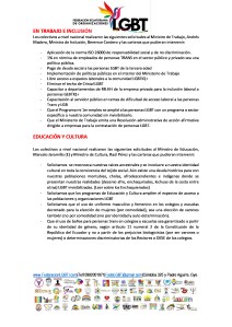 - Que el Programa mi 1er empleo se amplié a las personas LGBT con un programa o sector específico a nuestra comunidad sin invisibilizarlo.