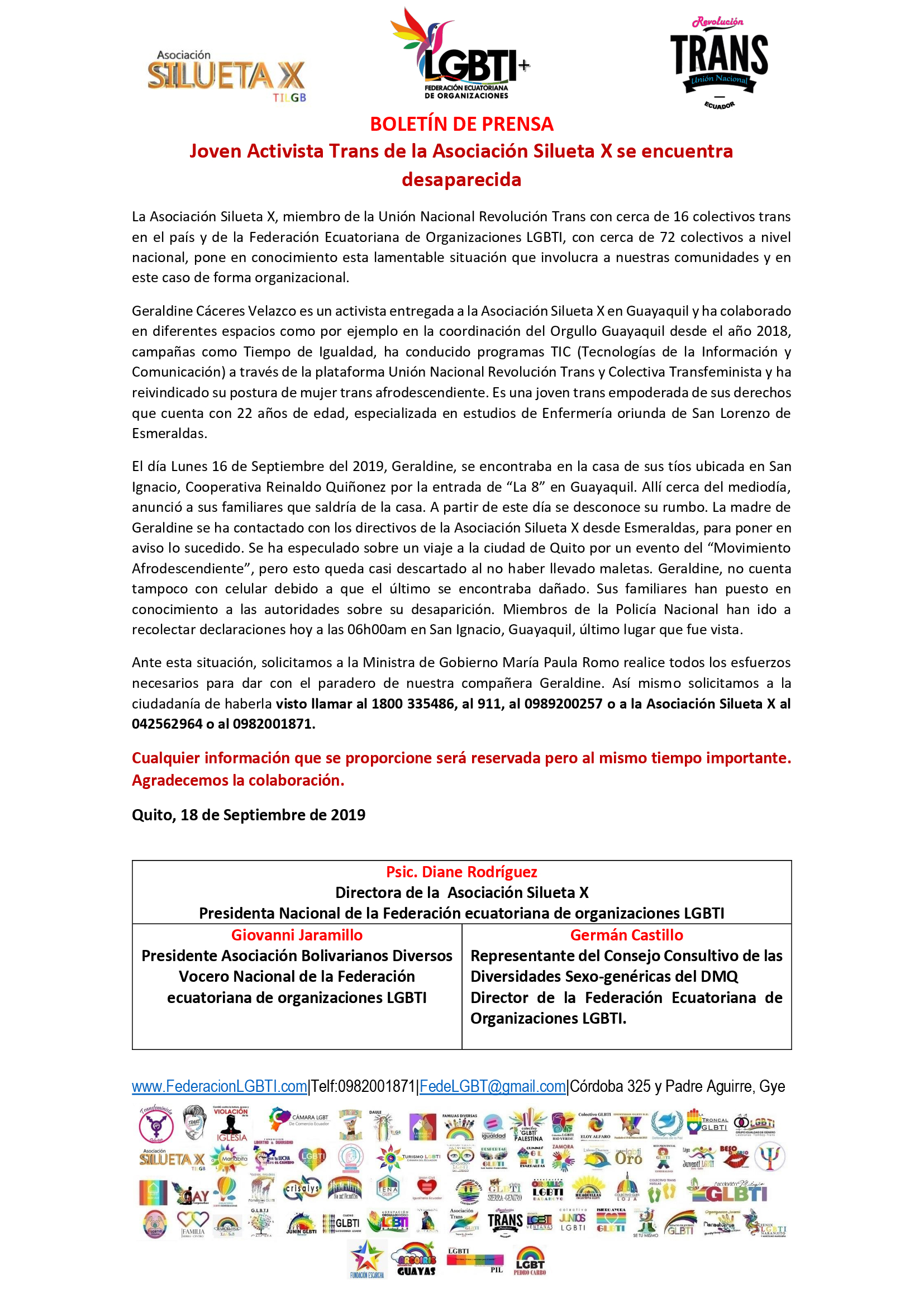 Boletín-de-Prensa-Joven-Activista-Trans-de-la-Asociación-Silueta-X-se-encuentra-desaparecida Publicado 18 septiembre, 2019 en 1654 × 2339 en Joven Activista Trans de la Asociación Silueta X se encuentra desaparecida Siguiente →