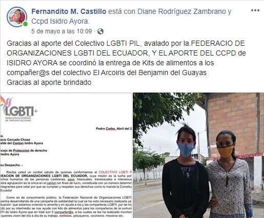 Colectivo PIL LGBT de Pedro Carbo, Isidro Ayora y Lomas de Sargentillo miembro de la Federación realiza gestiones para dar canastas de alimentos por Covid 19 en Ecuador 3
