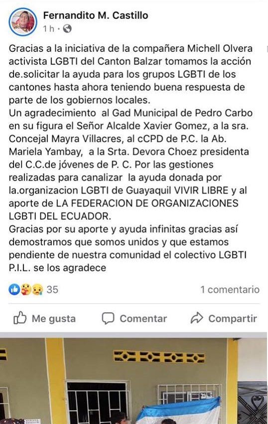 Colectivo PIL LGBT de Pedro Carbo, Isidro Ayora y Lomas de Sargentillo miembro de la Federación realiza gestiones para dar canastas de alimentos por Covid 19 en Ecuador 9