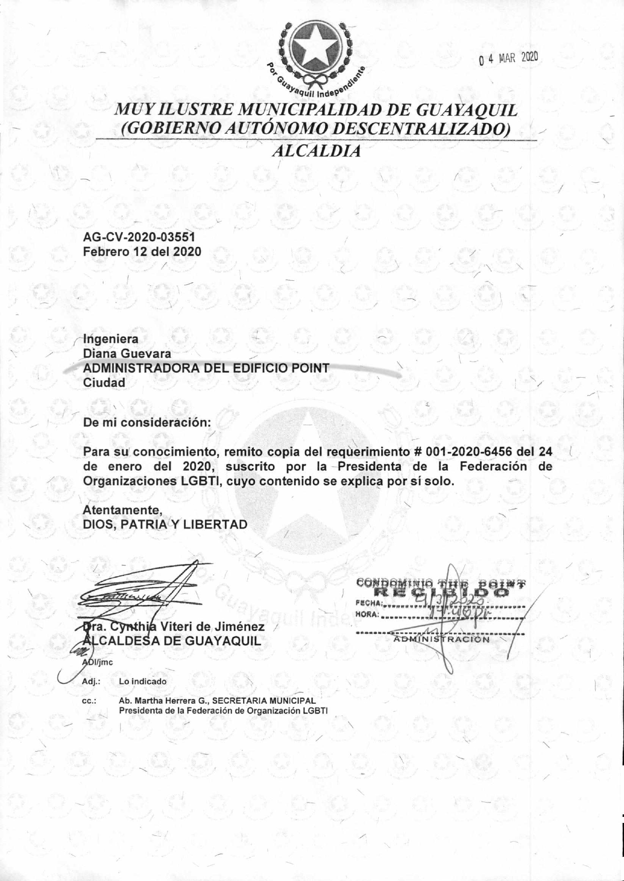 AG-CV-2020-3551_pages-to-jpg-0001 Publicado 28 junio, 2020 en 1237 × 1745 en Felicitamos al Municipio de Guayaquil por atender a nuestro pedido de encendido de luces de lugares emblemáticos con los colores LGBT Siguiente →