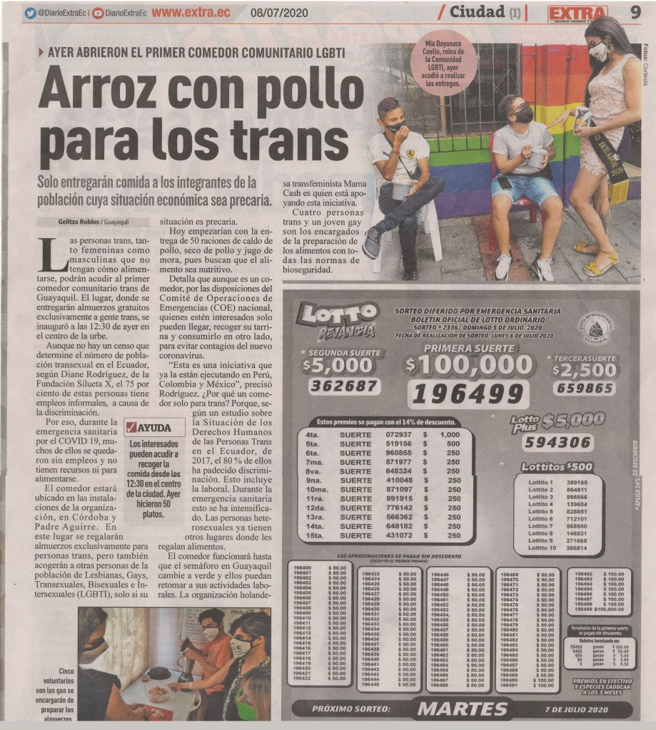 El comedor funcionará hasta que el semáforo en Guayaquil cambie a verde y ellos puedan retomar a sus actividades laborales. La organización holandesa transfeminista Mama Cash es quien está apoyando esta iniciativa.