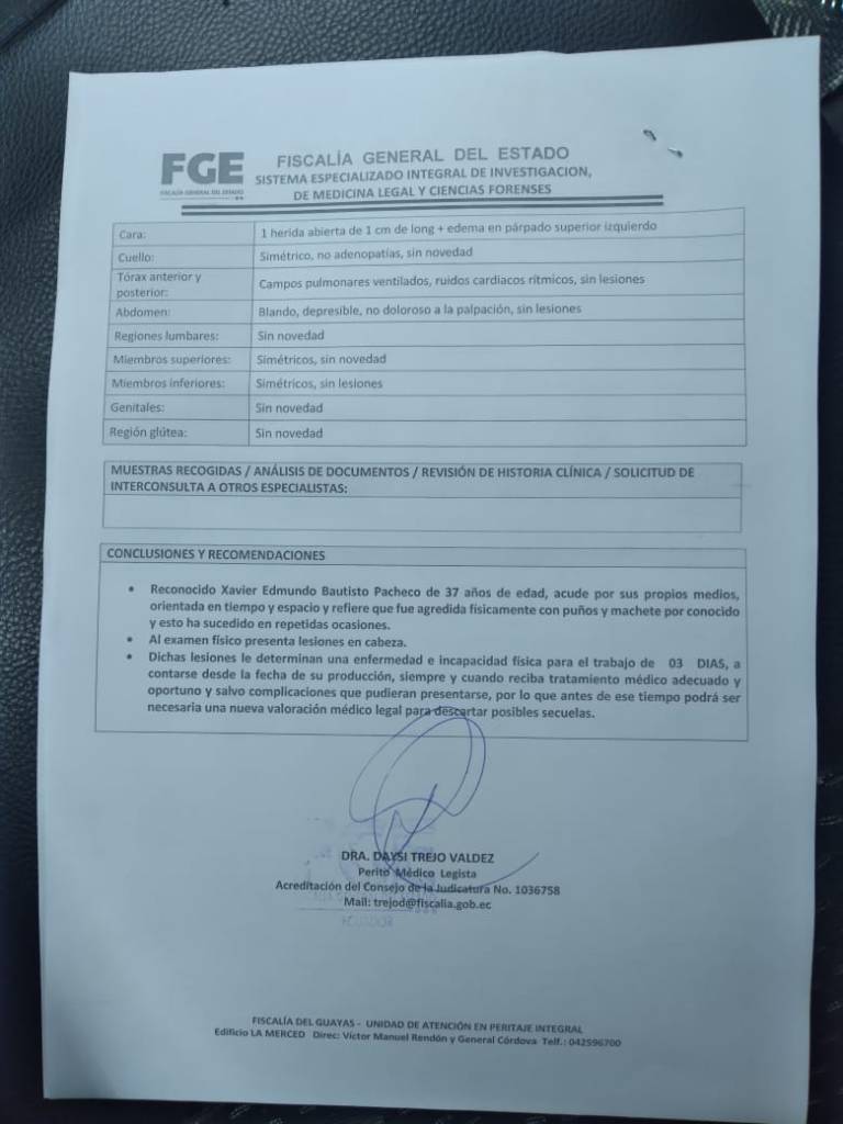 El día jueves 06 de agosto de 2020, Xiomara (X.E) Bautista Pacheco, fue agredida por una persona que se