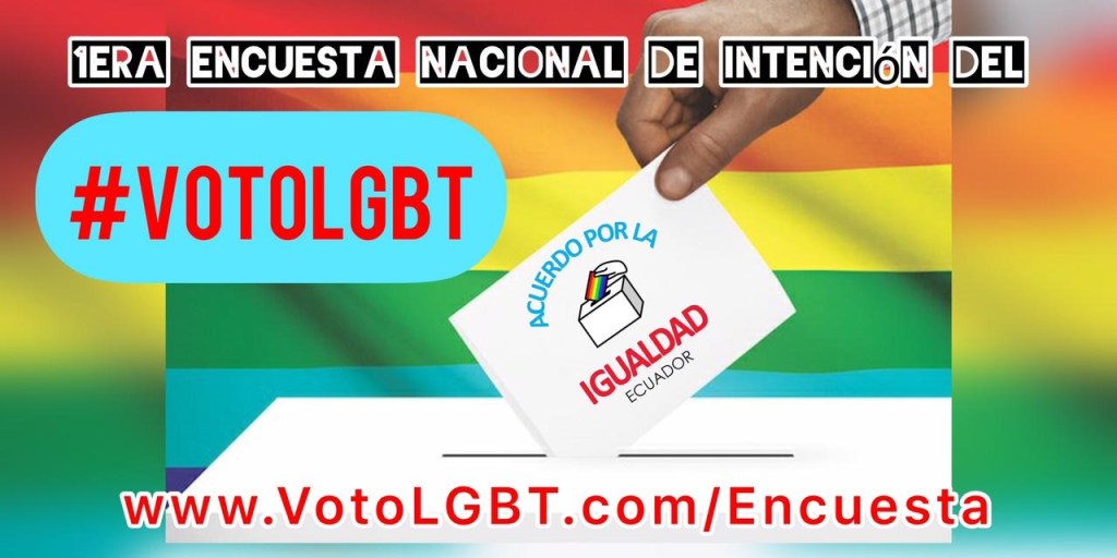 Esta encuesta nos permite conocer la intención del Voto LGBT -considerado entre el 8% y 10% en Ecuador – para el 07 de Febrero de 2021. Además, nos permitirá monitorear el nivel de información que tienen las personas LGBT con respecto a los candidatos en estas elecciones. Llénala aquí o en el Link de la Encuesta: https://votolgbt.com/encuesta/