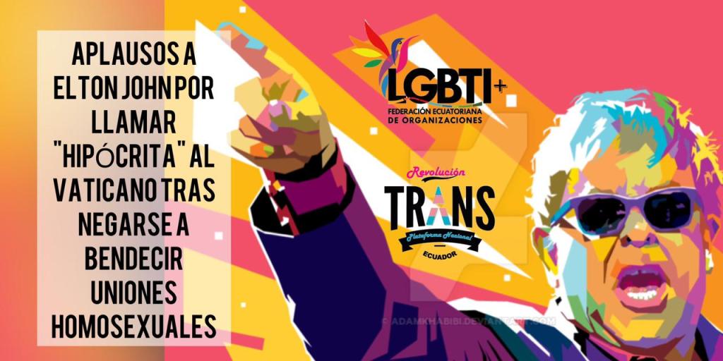 Aplaudimos a Elton John por desenmascarar al Vaticano 19 marzo, 2021 · de Anunciante · Añadir a marcadores el enlace permanente. · Aplausos a Elton John por llamar «Hipócrita» al vaticano trans negarse a bendecir uniones homosexuales Comparte esto: Comparte en Facebook (Se abre en una ventana nueva) Facebook Compartir en X (Se abre en una ventana nueva) X Compartir en Telegram (Se abre en una ventana nueva) Telegram Compartir en WhatsApp (Se abre en una ventana nueva) WhatsApp Relacionado