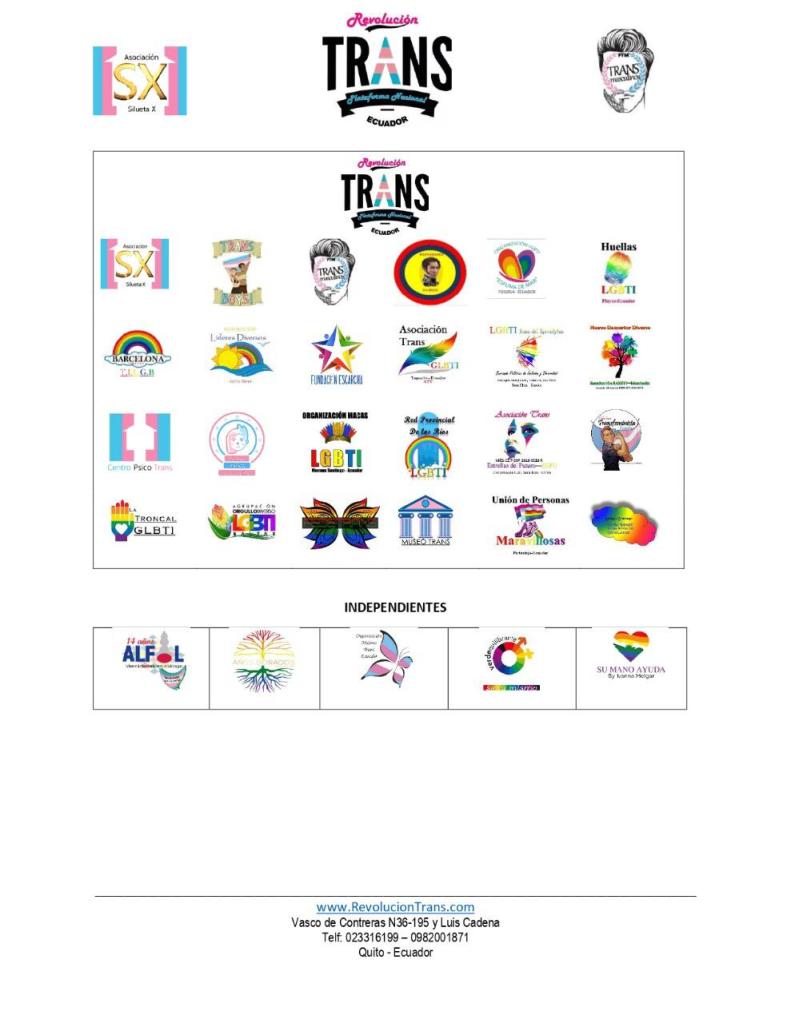 En la Reunión participaron miembros de la Plataforma Nacional revolución Trans como la Asociación Silueta X, la Asociación Transmasculinos Ecuador, Bolivarianos Diversos, Trans Boys Ecuador, Ecuador Intersexual y miembros aliados a la Plataforma como la Asociación Alfil de Quito y la Cámara LGBT de Comercio Ecuador.