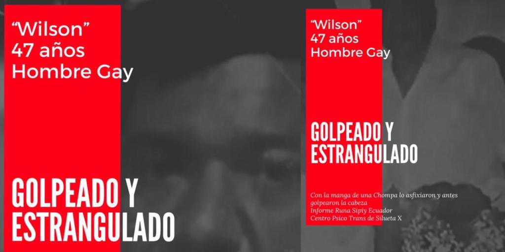 En un comunicado del Centro Psico Trans de Quito se detalla que “Wilson, compañero gay, fue golpeado brutalmente y estrangulado con una chompa en su habitación”.