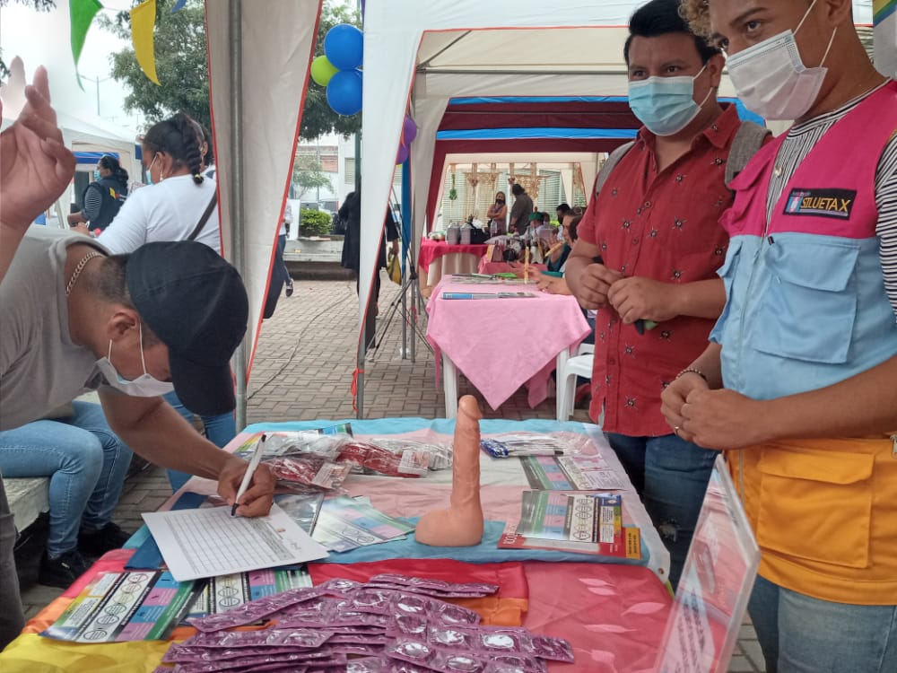 La Asociación Silueta X, Federación Ecuatoriana de Organizaciones LGBTIQ+y Miembros de La Asociación Milagro GLBTI estuvimos presentes en la feria joven del MIES haciendo el trabajo que hemos venido realizando siempre como es la entrega de kits de prevención para cualquier ITS que se presente silueta X te cuida, realizamos también dinámica con las persona para ver si saben el verdadero uso del preservativo.