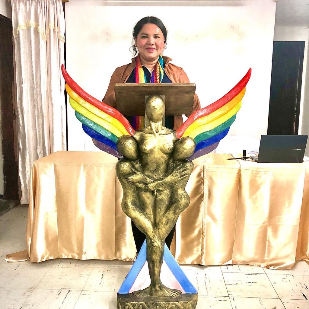 Este podio es una inversión del Centro Trans de Quito, con la finalidad de representar a modo de memorial los asesinatos de nuestras poblaciones.