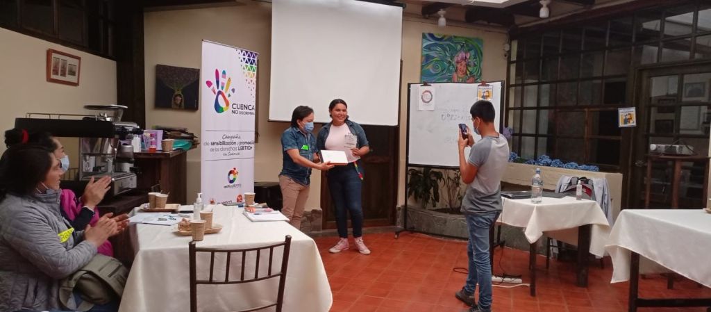«Me convertí en embajadora de la campaña Cuenca No Discrimina gestada por la Fundación Verde Equilibrante de Cuenca, la cual acepte con mucho cariño y respeto. También aporté a su iniciativa de empoderamiento de nuevos liderazgos en Cuenca, con mis conocimientos y el bagaje institucional de la Asociación Silueta X, sobre Denuncias LGBT.