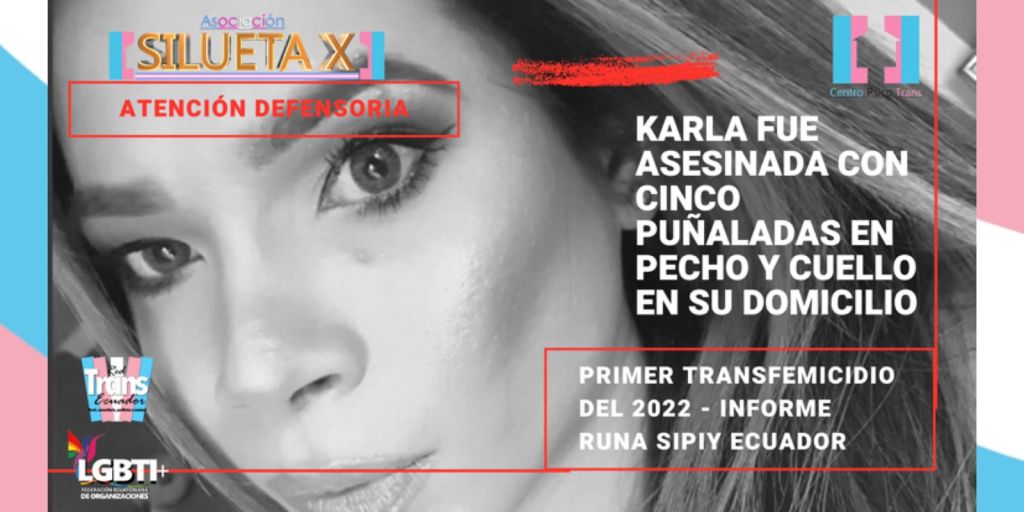 A partir del breve análisis institucional de la Asociación Silueta X, creemos que podríamos estar ante el caso de un transfemicidio, es decir que Karla fue asesinada por su pareja, novio, conviviente, etc. Esto puesto que, las seguridades del domicilio no estaban forzadas, objetos del mismo tampoco fueron sustraídos y lo único que desapareció fue su celular. El celular, es un elemento importante en investigaciones jurídicas y forenses, puesto que, en este tipo de casos, permite encontrar información de acoso, maltratos, discusiones, etc. Que regularmente quedan registrados en este dispositivo. Adicional a esto, si se tratase de un robo, lo que se descarta por nuestra parte, el fin regular hubiese sido en el peor de los casos quitarle la vida, pero la saña de las cinco puñaladas en el pecho y cuello, revelan que su asesino la conocía de cerca. Desde nuestro análisis creemos que podríamos estar ante un transfemicidio y no un asesinato o delito de odio.