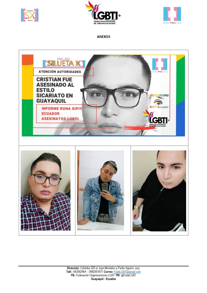 Por todo lo descrito hacemos un llamado a la fiscal general del Estado, Diana Salazar, al Subsecretario de Diversidades Felipe Ochoa, al Defensor del Pueblo de Ecuador (e), Cesar Córdoba Valverde, a realizar las coordinaciones necesarias para que se haga justicia tanto en el caso de Cristian como de Karla.