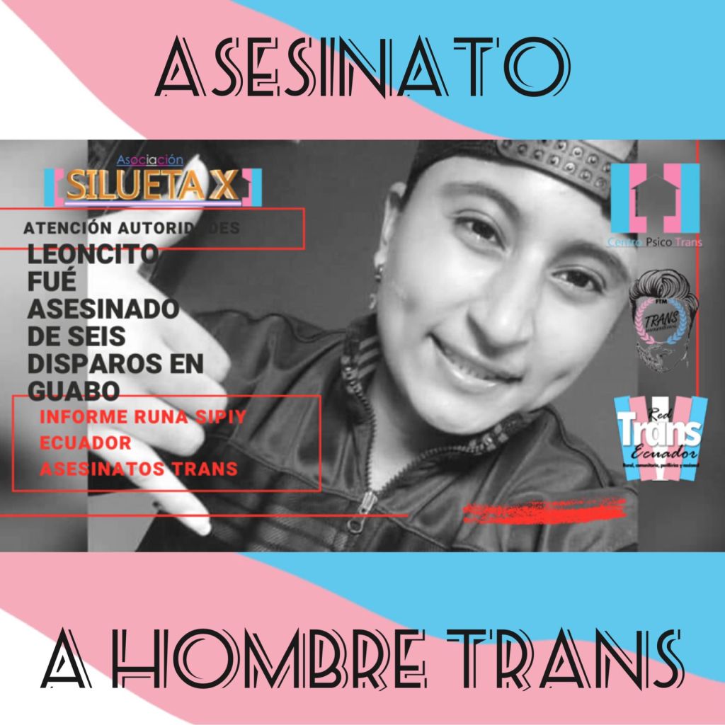 Según registros del Informe Runa Sipiy de la Asociación Silueta X, con el presente sería el cuarto asesinato o muerte violenta en contra de nuestras poblaciones en este 2022, en tan solo el primer mes de este año. Es importante mencionar también que el presente caso, sería el primer asesinato en contra de un hombre trans en más de 9 años, según nuestros registros.