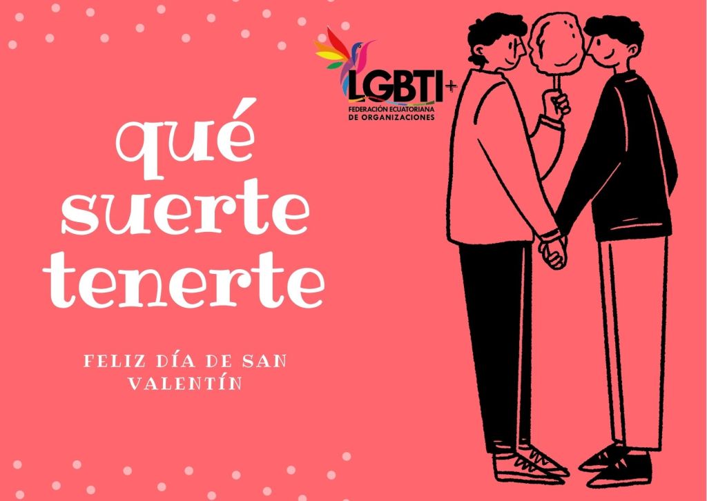 qué suerte tenerte Feliz día de San Valentín 14 febrero, 2022 · de Anunciante · Añadir a marcadores el enlace permanente. · qué suerte tenerteFeliz día de San Valentín #FederacionLGBTEcuador #FederacionLGBTIEcuador #SomosFederadosLGBTIQ+ Comparte esto: Comparte en Facebook (Se abre en una ventana nueva) Facebook Compartir en X (Se abre en una ventana nueva) X Compartir en Telegram (Se abre en una ventana nueva) Telegram Compartir en WhatsApp (Se abre en una ventana nueva) WhatsApp Relacionado