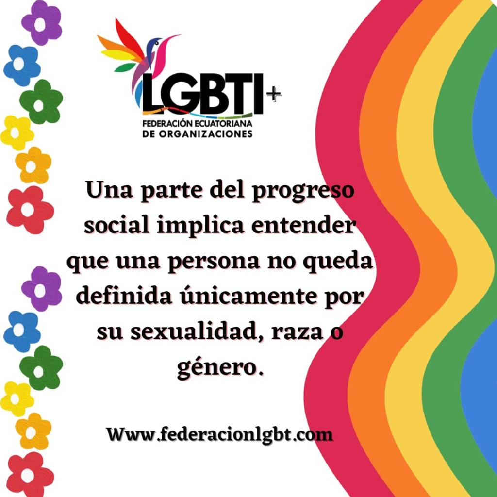 Una parte del progreso social implica entender que una persona no queda definida únicamente por su sexualidad, raza o género. 12 mayo, 2022 · de Moderador · Añadir a marcadores el enlace permanente. · #FederacionLGBTEcuador #FederadosLGBTIEcuador #SomosFederadosLGBTIQ+ Www.federacionlgbt.com Comparte esto: Haz clic para compartir en Facebook (Se abre en una ventana nueva) Facebook Haz clic para compartir en X (Se abre en una ventana nueva) X Haz clic para compartir en Telegram (Se abre en una ventana nueva) Telegram Haz clic para compartir en WhatsApp (Se abre en una ventana nueva) WhatsApp Relacionado