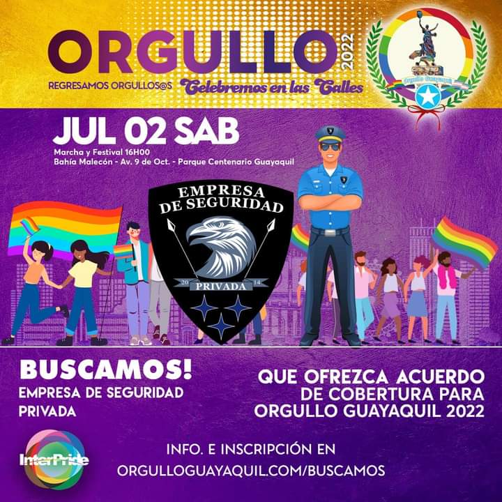 Buscamos EMPRESA DE SEGURIDAD PRIVADA para cobertura del #OrgulloGuayaquil, que ofrezca un acuerdo de cobertura.