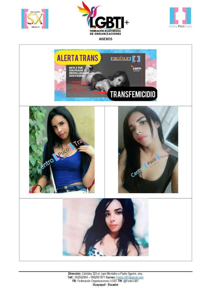 El Centro Psico Trans de Quito de la Asociación Silueta X, miembros de la Plataforma Nacional “Nueva Red Trans Ecuador” (que cubre con sus colectivas lo rural, comunitario y las periferias), el Observatorio GLBTI, y la Federación Nacional de Organizaciones LGBT, ponen en conocimiento público el siguiente hecho.