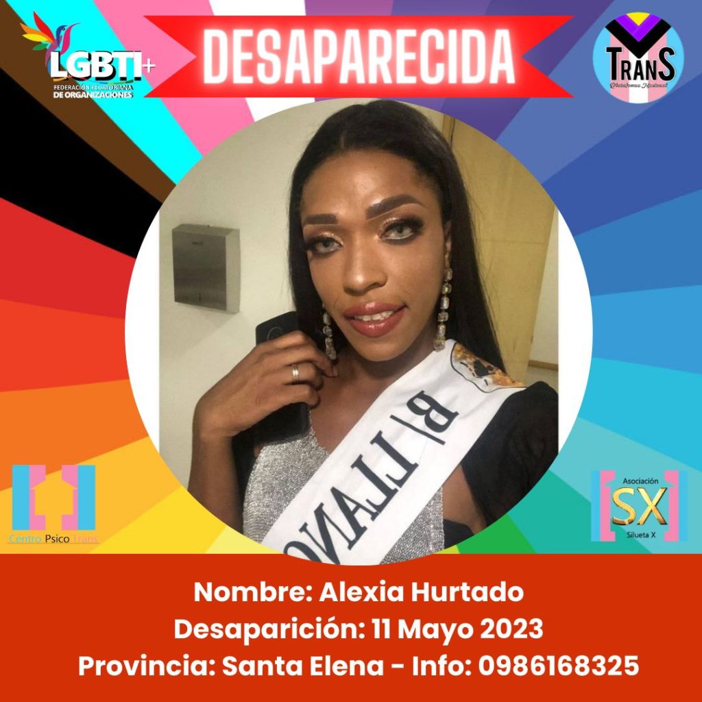 Nuestra compañera Alexia Hurtado que vivía en Muey, ha desparecido desde el 11 de mayo de 2023. La denuncia por su desaparición involuntaria ha sido presentada en la fiscalía. La última vez fue vista en el mercado de Libertad. Agradecemos información pertinente. Sus familiares y amigos estamos desesperados.