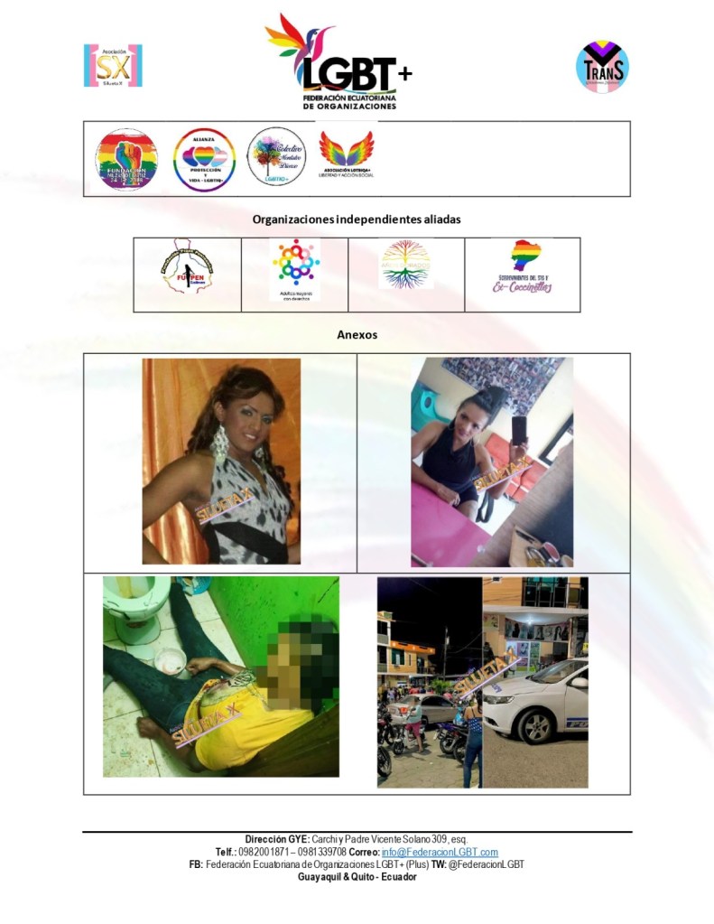 Asociación Silueta X, miembros de la Plataforma Nacional Trans Ecuador (CoaliTrans), el Observatorio GLBTI, y la Federación Nacional de Organizaciones LGBT, ponen en conocimiento público el siguiente hecho.