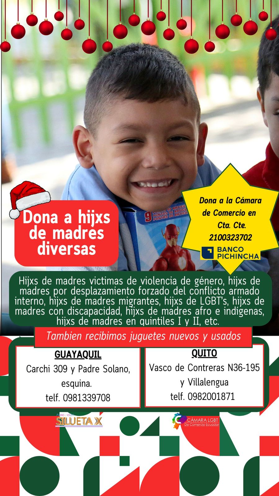 Hijxs de madres victimas de violencia de género, hijxs de madres por desplazamiento forzado del conflicto armado interno, hijxs de madres migrantes, hijxs de LGBT’s, hijxs de madres con discapacidad, hijxs de madres afro e indigenas, hijxs de madres en quintiles I y II, etc.