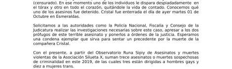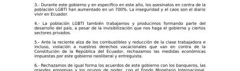 COMUNICADO NACIONAL LA CLASE OBRERA LGBT NOS UNIMOS AL PARO NACIONAL La Federación Ecuatoriana de Organizaciones LGBTI, con másº de 74 organizaciones afiliadas a nivel nacional, ante los recientes […]