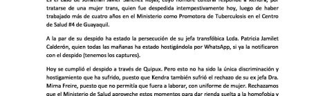 A partir de los despidos intempestivos que realiza el Ministerio de Salud, ha surgido la oportunidad de despedir a los LGBT que son críticos y que han sido hostigados durante […]