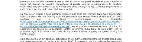 BOLETÍN DE PRENSA ASESINAN SALVAJEMENTE A JOVEN LGBTI POR DEGOLLAMIENTO EN QUITO   La Asociación Silueta X, a través del Observatorio Sumak Kawsay, miembro de las más de 72 organizaciones […]