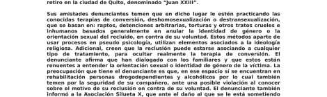 Alerta a las Autoridades ante posible rapto en Centro de Conversión o de tortura LGBT