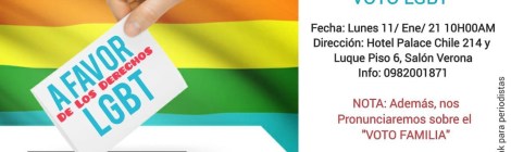 RUEDA DE PRENSA ECUADORCampaña Acuerdo por la IgualdadVOTO LGBT Fecha: Mañana Lunes 11/ Ene/ 21Hora: 10H00AMDirección: Hotel Palace Chile 214 y Luque Piso 6, Salón Verona, Guayaquil, Ecuador.Info: 0982001871