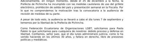 Carta de apoyo a la Prefecta Paola Pabón ante evidente persecusión política