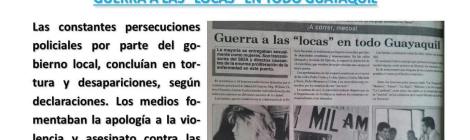 #20AñosDespenalizacion Guerra de «locas» en todo Guayaquil. Las constantes persecuciones policiales por parte del gobierno local, concluían en tortura y desapariciones, según declaraciones. Los medios fomentaban la apología a la […]