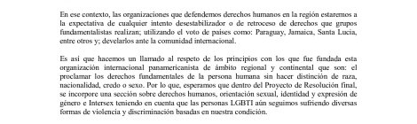 GLBTI hacen llamado a los Estados Miembros que participan de la Cuadragésimo Séptimo Período Ordinario
