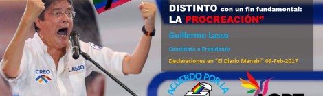 «El MATRIMONIO es la unión de dos personas de SEXO DISTINTO con un fin fundamental: LA PROCREACIÓN»   Guillermo Lasso Candidato a Presidente Declaraciones en el Diario Manabí 09-Feb-2017   […]