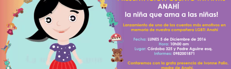 Anahí La niña que ama a las niñas Lanzamiento de uno de los cuentos más emotivos en memoria de nuestra compañera LGBTI Anahí Fecha: LUNES 5 de Diciembre de 2016 […]