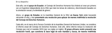 Gye, 18 de Noviembre de 2016 Oficio FLGBT181116 Rechazo al intento de socavar la integridad institucional del Consejo de Derechos Humanos y que busca bloquear el Experto en orientación sexual […]