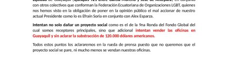 DENUNCIAN LA TOMA DE $100.000 DE LA FUNDACIÓN ECUATORIANA EQUIDAD